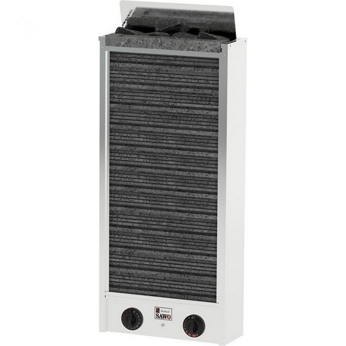 Лаконичный и сдержанный внешний вид, простота использования, универсальность. Если именно так вы представляете свою идеальную печь для сауны, то мы рады предложить вам электрокаменку Mini Cirrus Rock 2 CIR2-50NB-P от компании SAWO. Mini Cirrus Rock 2 CIR2-50NB-P - это вертикальная электрическая печь предназначенная для подвесной настенной установки. Модель идеально подойдёт для парной объёмом 4-8 метров кубических. Инженеры компании SAWO наделили каменку уплощённой формой для максимальной экономии пространства. Фронтальная часть электрокаменки выполнена в виде решётки. Такая конфигурация не только придаёт изюминку дизайну каменки, но и играет важную роль в эксплуатации Mini Cirrus Rock 2 CIR2-50NB-P. Наличие фронтальной решётки обеспечивает увеличенный доступ к 6 кг камней, которые вмещает в себя печь. Снаружи данная модель имеет облицовку из натурального камня талькохлорита. Масса облицовки составляет 23 кг. Это даёт возможность быстро прогреть помещение и долго сохранять температуру нагрева без лишних энергозатрат. Подливая воду на камни и облицовку можно получить большое количество лёгкого мелкодисперсного пара и насладиться влажной русской баней. Все элементы электрокаменки выполнены из нержавеющей стали высочайшего качества. Материал прекрасно переносит эксплуатацию в агрессивной среде с высокой влажностью и температурой. Для подключения печи вам потребуется наличие сетей с напряжением 220 В и 380 В. В нижней части каменки находится встроенная панель управления с простым и понятным интерфейсом. С её помощью вы сможете запрограммировать режим работы электрокаменки заранее, а также вносить необходимые корректировки непосредственно во время процедуры парения.